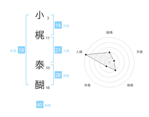 小梶 泰醐さんの天格は14画の1点!