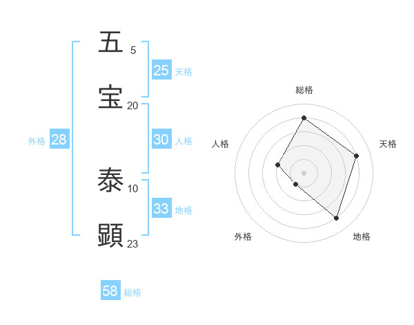 五宝 泰顕さんの天格は25画の4点!