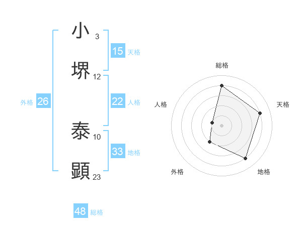 小堺 泰顕さんを姓名の画数から五運を鑑定