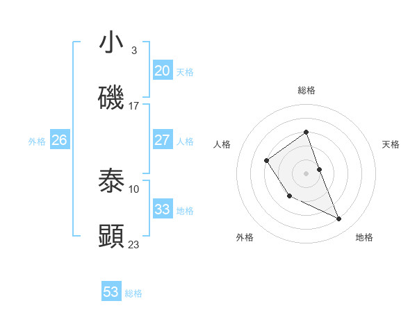 小磯 泰顕さんの総格は53画の3点!