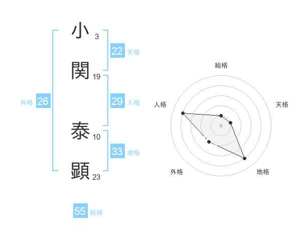 小関 泰顕さんの天格は22画の1点!