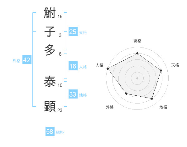 鮒子多 泰顕さんの総格は58画の4点!