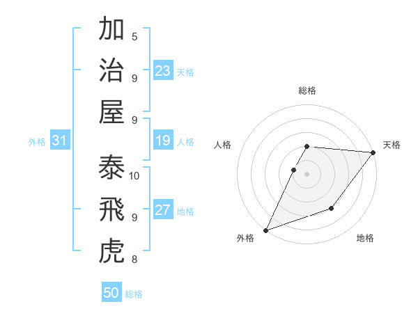 加治屋 泰飛虎さんの天格は23画の5点!