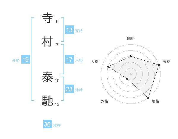 寺村 泰馳さんを姓名の画数から五運を鑑定