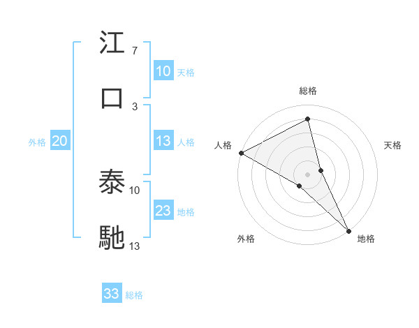 江口 泰馳さんの総格は33画の4点!