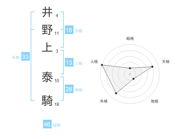 井野上 泰騎さんを姓名の画数から五運を鑑定