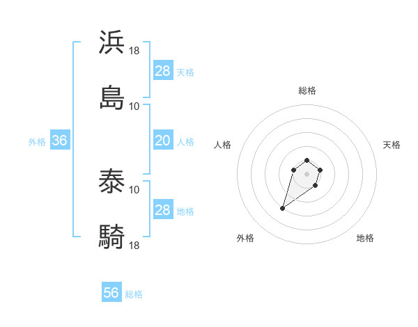 浜島 泰騎さんの天格は28画の1点!