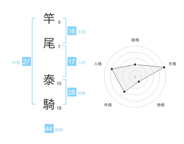 竿尾 泰騎さんを姓名の画数から五運を鑑定