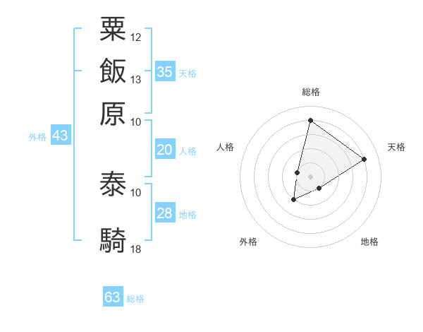粟飯原 泰騎さんの総格は63画の4点!