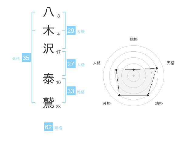 八木沢 泰鷲さんの名前の鑑定結果は!