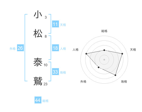 小松 泰鷲さんの総格は44画の2点!
