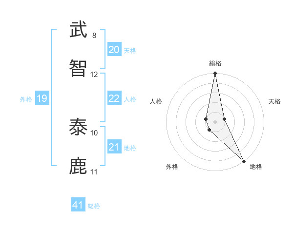 武智 泰鹿さんを姓名の画数から五運を鑑定