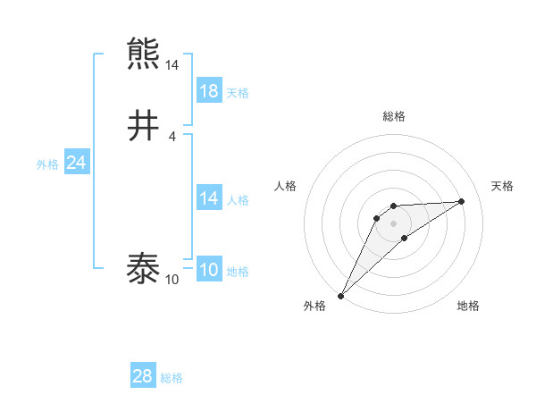 熊井 泰さんの天格は18画の4点!