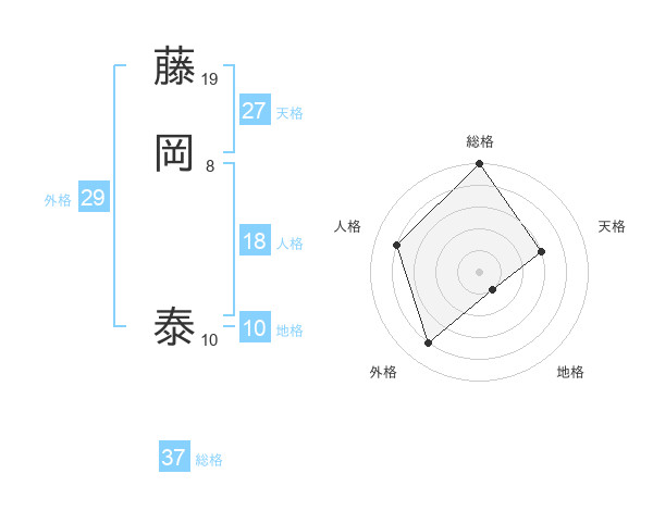 藤岡 泰さんの総格は37画の5点!