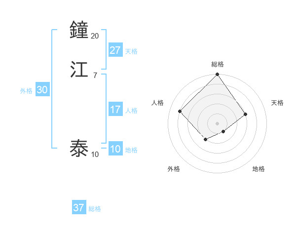 鐘江 泰さんを姓名の画数から五運を鑑定