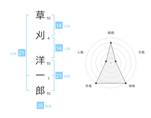 草刈 洋一郎さんの総格は35画の4点!
