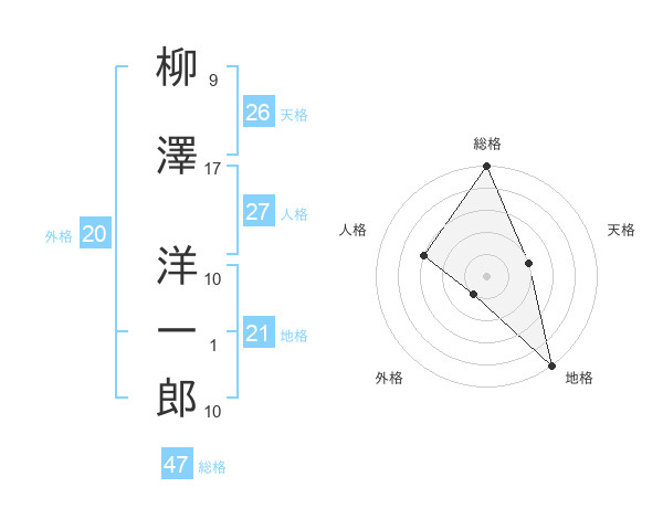 柳澤 洋一郎さんの総格は47画の5点!