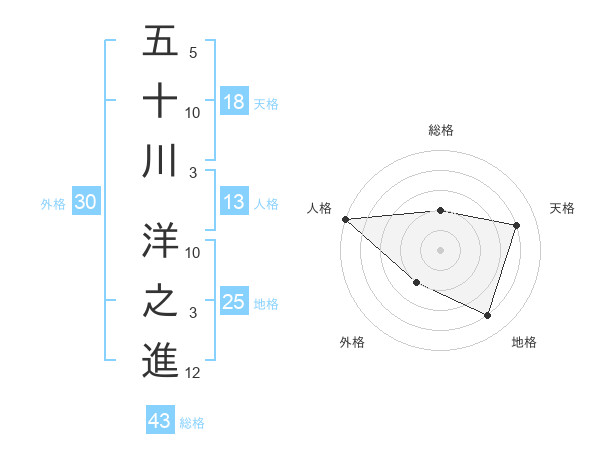 五十川 洋之進さんを姓名の画数から五運を鑑定