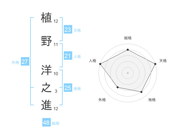 植野 洋之進さんを姓名の画数から五運を鑑定
