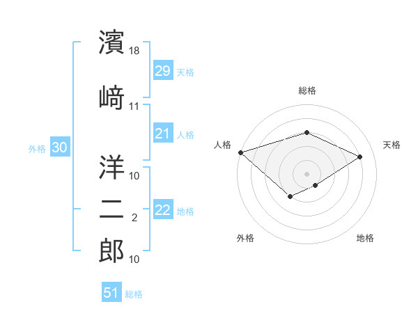 濱﨑 洋二郎さんを姓名の画数から五運を鑑定