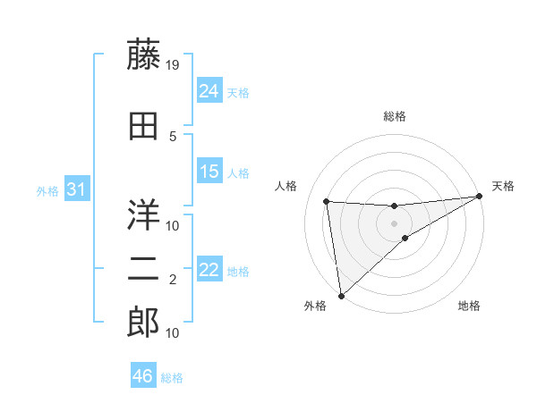 藤田 洋二郎さんを姓名の画数から五運を鑑定