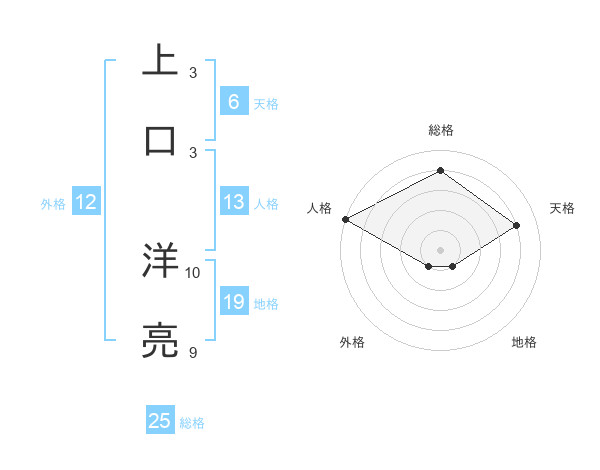 上口 洋亮さんの総格は25画の4点!
