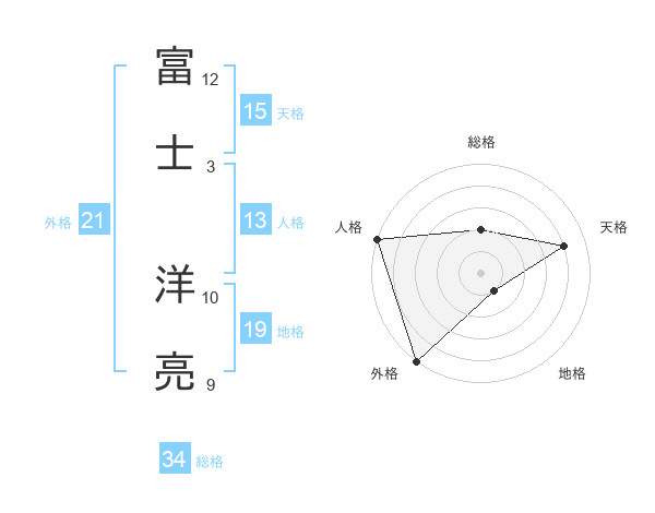 富士 洋亮さんの天格は15画の4点!