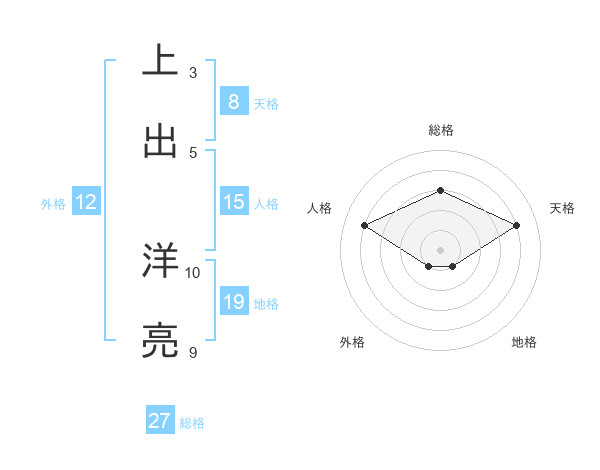 上出 洋亮さんの総格は27画の3点