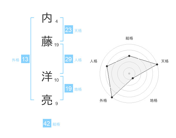 内藤 洋亮さんを姓名の画数から五運を鑑定