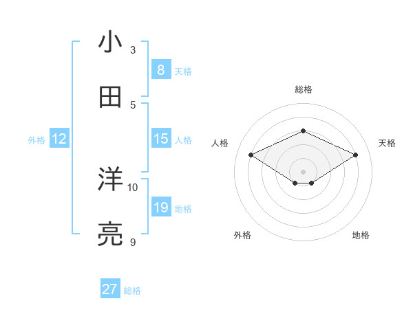 小田 洋亮さんの総格は27画の3点!