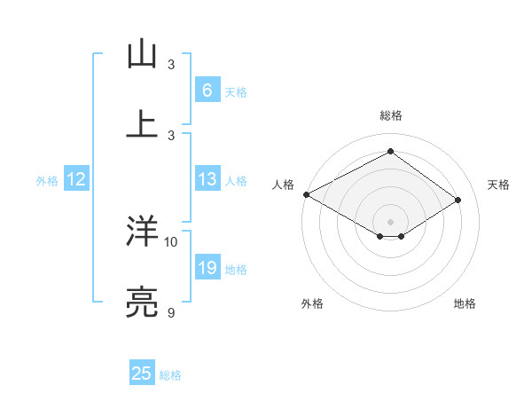 山上 洋亮さんを姓名の画数から五運を鑑定