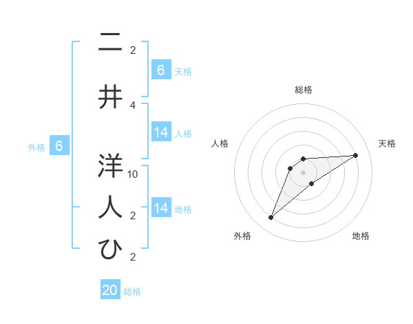 二井 洋人ひさんを姓名の画数から五運を鑑定