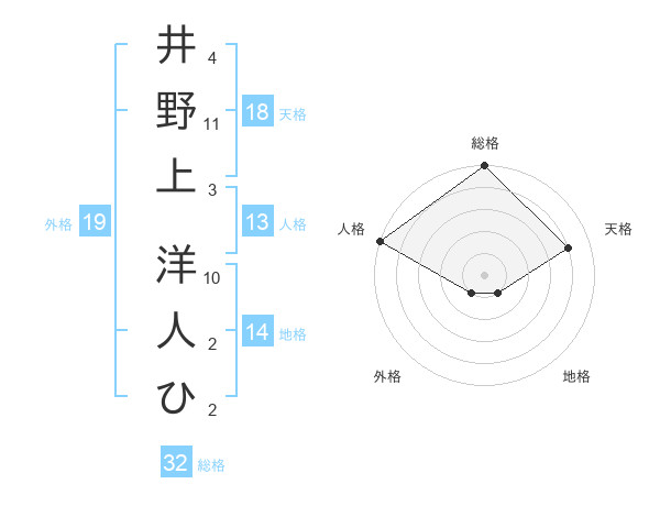 井野上 洋人ひさんの総格は32画の5点