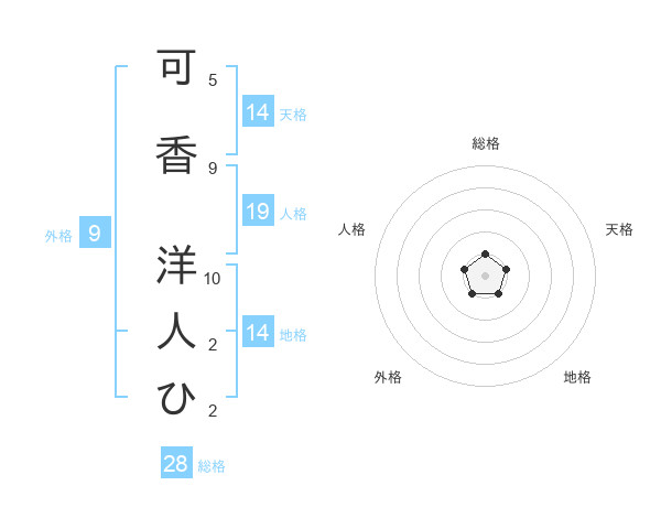 可香 洋人ひさんの総格は28画の1点!