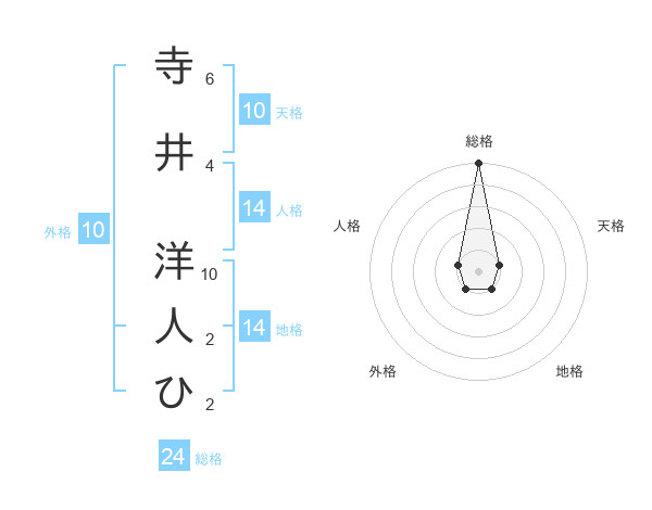 寺井 洋人ひさんを姓名の画数から五運を鑑定