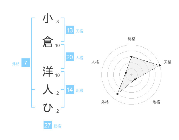 小倉 洋人ひさんの天格は13画の5点!