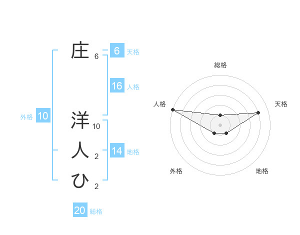 庄 洋人ひさんの総格は20画の1点!