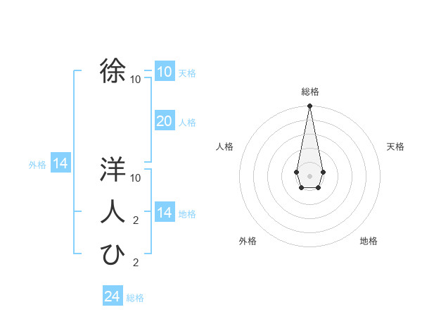 徐 洋人ひさんの総格は24画の5点!