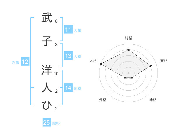 武子 洋人ひさんの総格は25画の4点!
