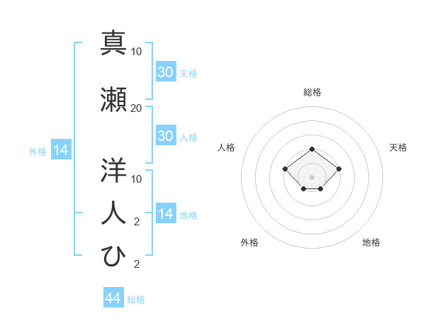 真瀬 洋人ひさんの総格は44画の2点!