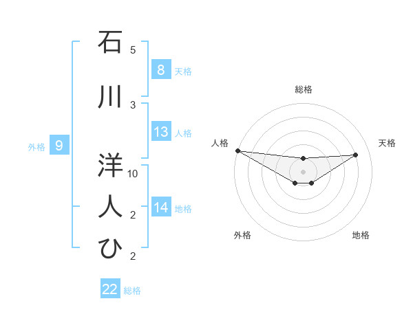 石川 洋人ひさんを姓名の画数から五運を鑑定
