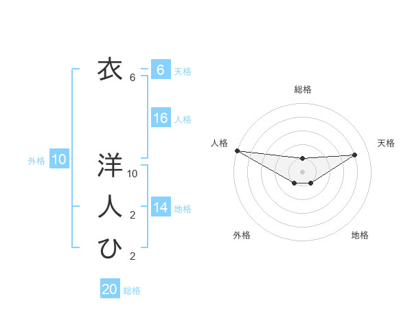 衣 洋人ひさんの総格は20画の1点!