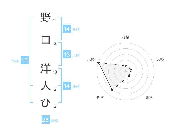 野口 洋人ひさんを姓名の画数から五運を鑑定