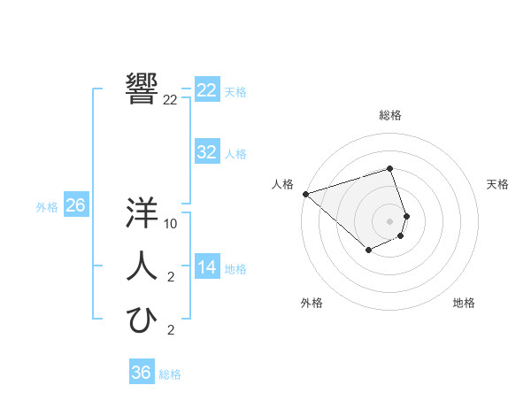 響 洋人ひさんを姓名の画数から五運を鑑定