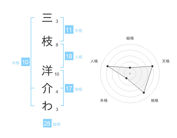 三枝 洋介わさんを姓名の画数から五運を鑑定