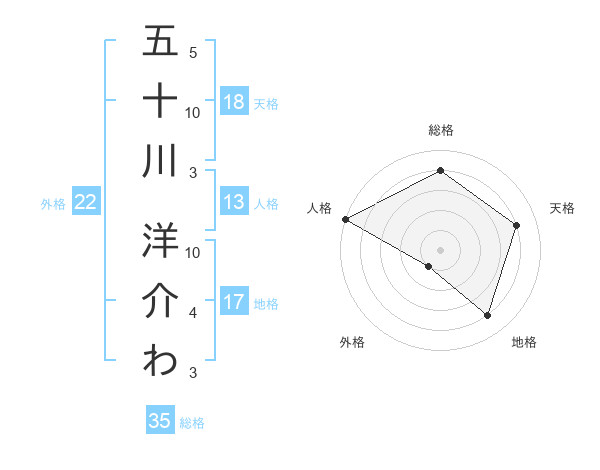 五十川 洋介わさんを姓名の画数から五運を鑑定