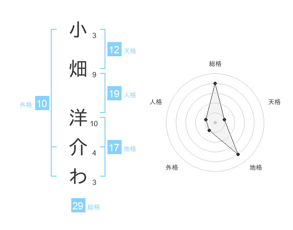小畑 洋介わさんを姓名の画数から五運を鑑定