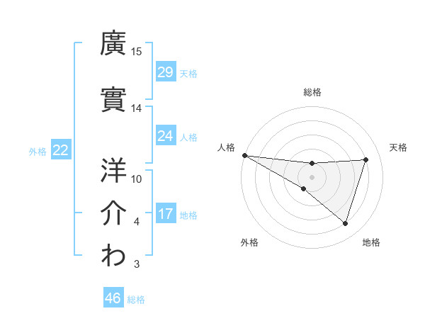 廣實 洋介わさんを姓名の画数から五運を鑑定