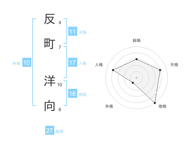 反町 洋向さんの総格は27画の3点!