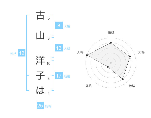 古山 洋子はさんを姓名の画数から五運を鑑定